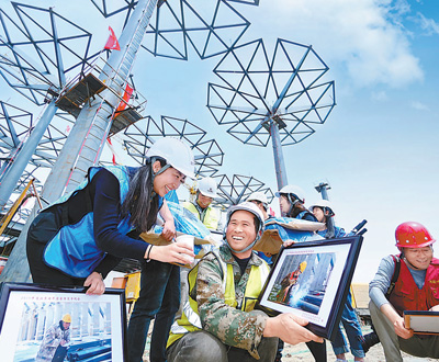 當(dāng)天是“五一”國(guó)際勞動(dòng)節(jié),北京延慶區(qū)委宣傳部、團(tuán)委組織青年志愿者到工地一線,走訪慰問(wèn)勞動(dòng)者并向他們贈(zèng)送抓拍他們的工作照,讓勞動(dòng)者感受到社會(huì)對(duì)他們的尊重和贊美。(記者 賀勇 攝)