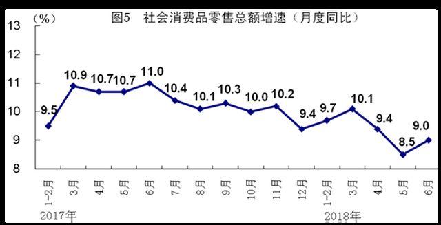 上半年,全國居民人均消費(fèi)支出9609元,同比名義增長(zhǎng)8.8%,比一季度加快1.2個(gè)百分點(diǎn),扣除價(jià)格因素實(shí)際增長(zhǎng)6.7%,加快1.3個(gè)百分點(diǎn)。其中,城鎮(zhèn)居民人均消費(fèi)支出名義增長(zhǎng)6.8%,加快1.1個(gè)百分點(diǎn);農(nóng)村居民人均消費(fèi)支出名義增長(zhǎng)12.2%,加快1.2個(gè)百分點(diǎn)。上半年,社會(huì)消費(fèi)品零售總額180018億元,同比增長(zhǎng)9.4%,增速比一季度回落0.4個(gè)百分點(diǎn)。按經(jīng)營單位所在地分,城鎮(zhèn)消費(fèi)品零售額154091億元,增長(zhǎng)9.2%;鄉(xiāng)村消費(fèi)品零售額25927億元,增長(zhǎng)10.5%。按消費(fèi)類型分,餐飲收入19457億元,增長(zhǎng)9.9%;商品零售160561億元,增長(zhǎng)9.3%。消費(fèi)升級(jí)類商品銷售增長(zhǎng)較快,限額以上單位家用電器和音像器材類、通訊器材類和化妝品類同比分別增長(zhǎng)10.6%、10.6%和14.2%,分別比上年同期加快0.2、0.5和2.9個(gè)百分點(diǎn)。6月份,社會(huì)消費(fèi)品零售總額同比增長(zhǎng)9.0%,比上月加快0.5個(gè)百分點(diǎn)。