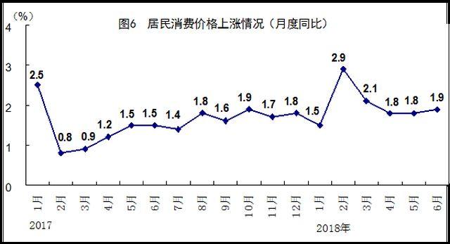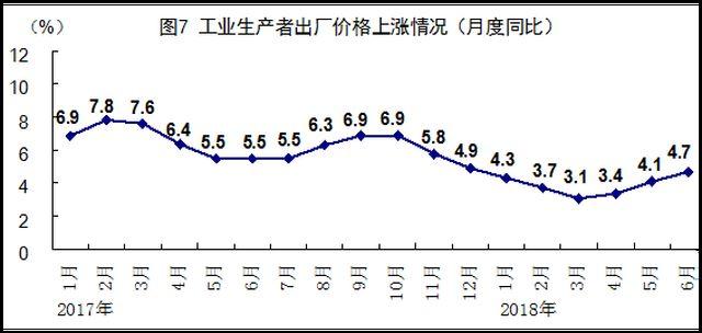 上半年,全國居民消費(fèi)價(jià)格同比上漲2.0%,漲幅比一季度回落0.1個(gè)百分點(diǎn)。分類別看,食品煙酒價(jià)格同比上漲1.4%,衣著上漲1.1%,居住上漲2.3%,生活用品及服務(wù)上漲1.6%,交通和通信上漲1.2%,教育文化和娛樂上漲2.1%,醫(yī)療保健上漲5.5%,其他用品和服務(wù)上漲1.1%。6月份,全國居民消費(fèi)價(jià)格同比上漲1.9%,漲幅比上月擴(kuò)大0.1個(gè)百分點(diǎn),環(huán)比下降0.1%。上半年,全國工業(yè)生產(chǎn)者出廠價(jià)格同比上漲3.9%,漲幅比一季度擴(kuò)大0.2個(gè)百分點(diǎn);全國工業(yè)生產(chǎn)者購進(jìn)價(jià)格同比上漲4.4%。6月份,全國工業(yè)生產(chǎn)者出廠價(jià)格同比上漲4.7%,漲幅比上月擴(kuò)大0.6個(gè)百分點(diǎn),環(huán)比上漲0.3%;全國工業(yè)生產(chǎn)者購進(jìn)價(jià)格同比上漲5.1%,環(huán)比上漲0.4%。