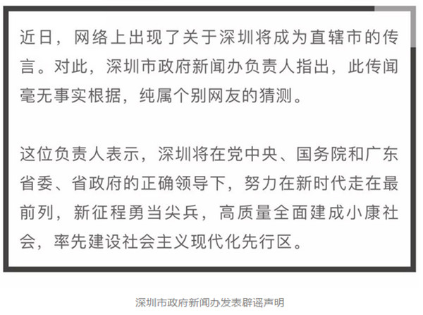 近日,網(wǎng)絡上出現(xiàn)了關于深圳將成為直轄市的傳言。
