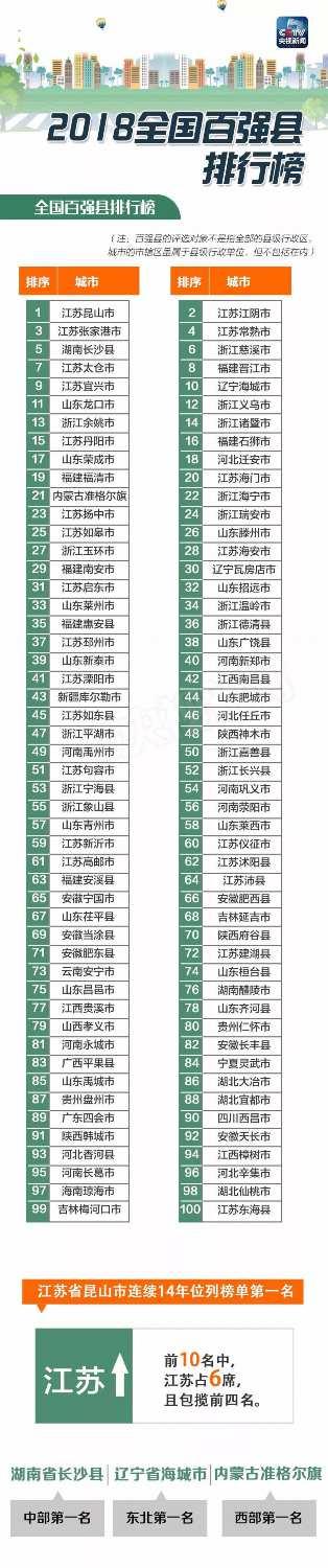 原標(biāo)題:2018全國百強(qiáng)縣排行榜 看看你家鄉(xiāng)上榜了嗎?