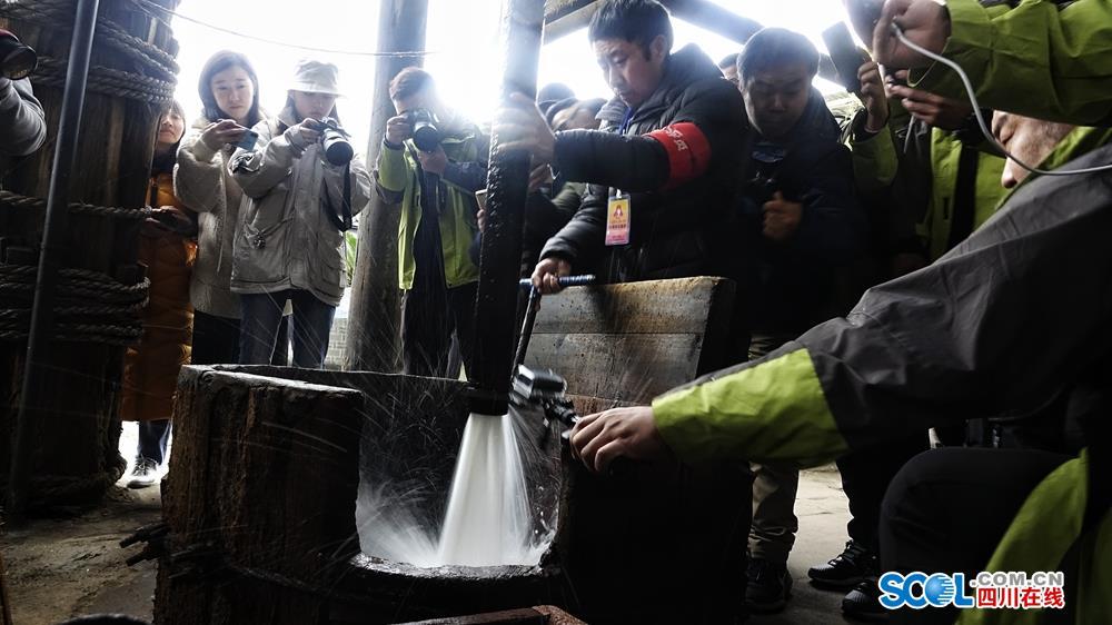 四川在線消息(記者 鄧童童 楊琴 秦勇 攝影 華小峰)在世界第一口超千米深井畔直播古法制鹽過程,駕駛無人機換一個角度參觀“東方龍宮”。12月9日下午,“川躍四十年 再瞰新天府”媒體團打卡自貢旅游網(wǎng)紅地。