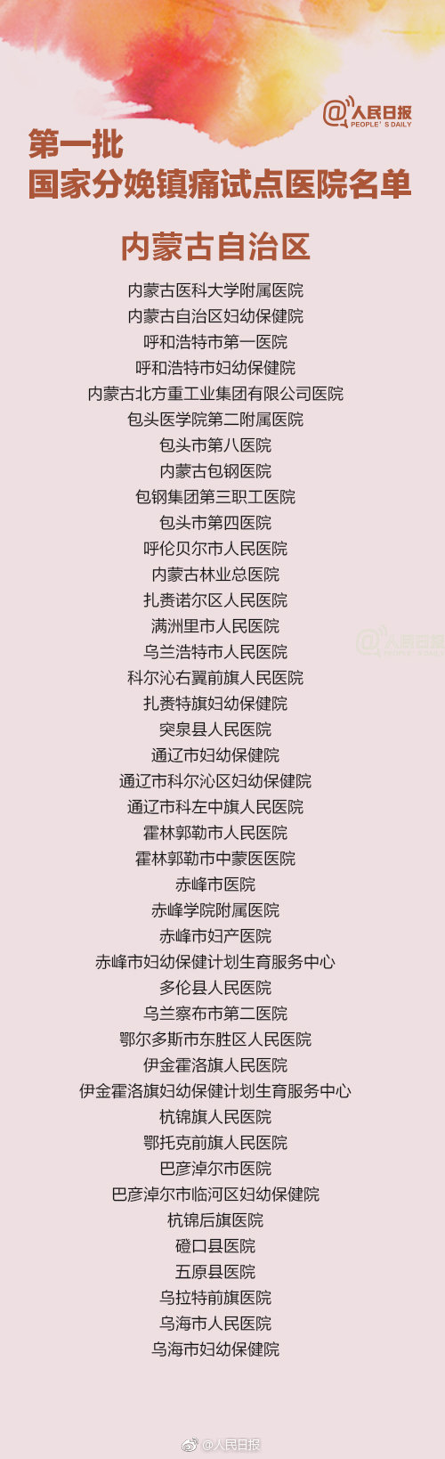 轉(zhuǎn)存!首批國家分娩鎮(zhèn)痛試點(diǎn)醫(yī)院名單來了!