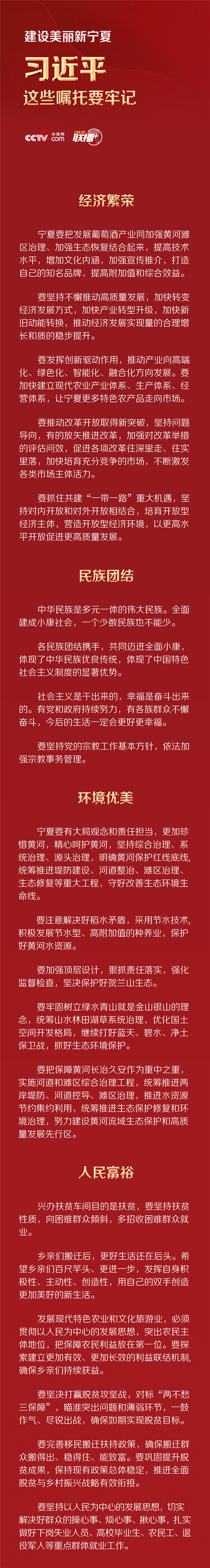在考察中,習(xí)近平看得仔細(xì),問(wèn)得詳細(xì),對(duì)寧夏各項(xiàng)工作取得的成績(jī)給予肯定,并就經(jīng)濟(jì)繁榮、民族團(tuán)結(jié)、環(huán)境優(yōu)美、人民富裕等問(wèn)題對(duì)寧夏提出具體要求。央視網(wǎng)《聯(lián)播+》特梳理,與您一同學(xué)習(xí)領(lǐng)悟。
