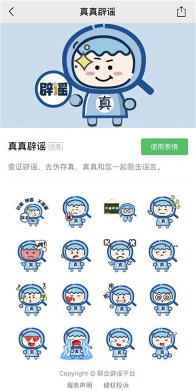我為自己設(shè)計(jì)了一個(gè)可愛(ài)的卡通形象——真真,在微信表情商店上線(xiàn)了16款表情,讓辟謠“動(dòng)起來(lái)”,在指尖傳遞正能量。同時(shí),我還推出了“真真說(shuō)”系列辟謠短視頻,用生動(dòng)可愛(ài)的方式將辟謠知識(shí)傳遞給大家,寓教于樂(lè)。