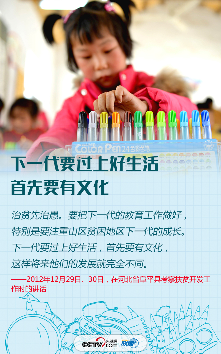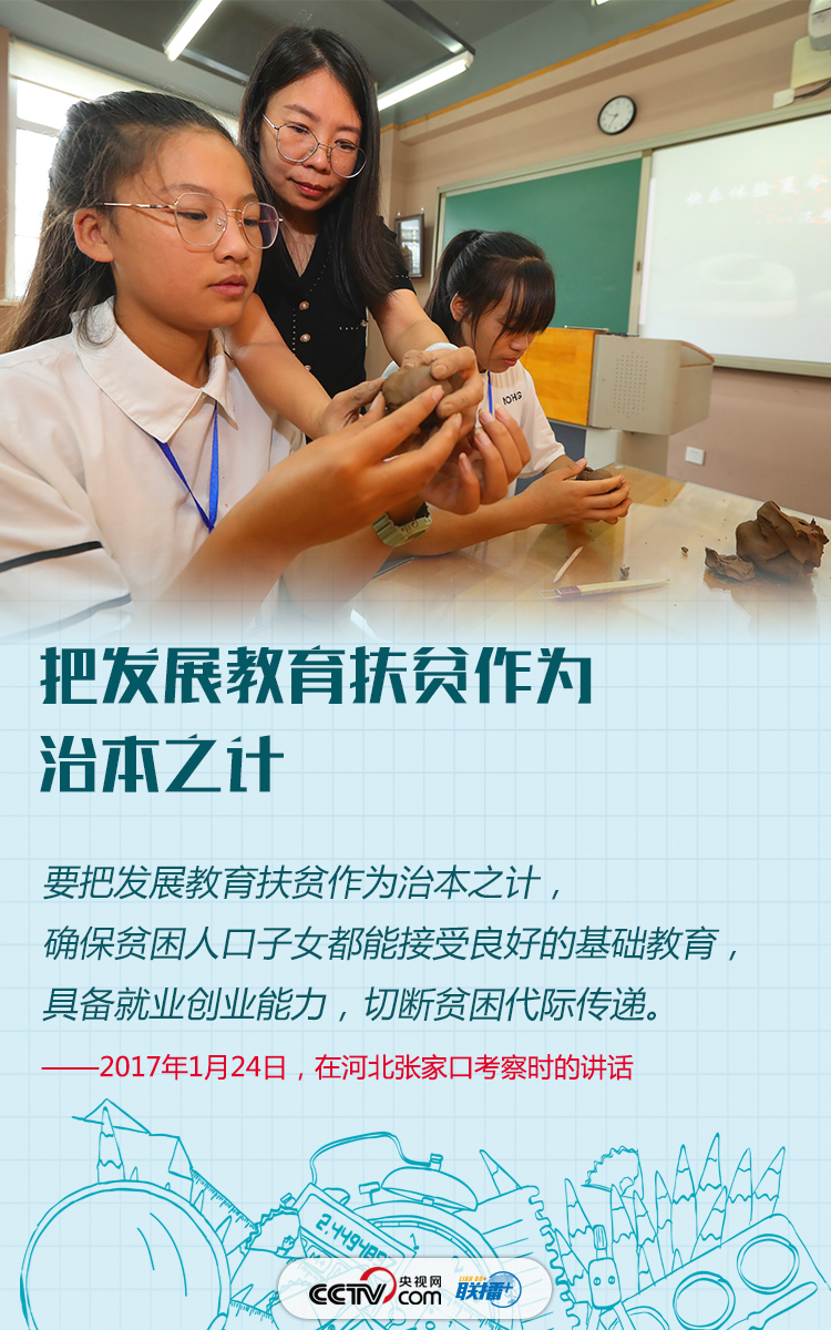 習(xí)近平總書記曾在多個場合強調(diào)教育扶貧的重要意義,希望通過教育讓同學(xué)們認識到造成貧困的原因,找到解決貧困的辦法,從而“立鴻鵠志,做奮斗者”,以實際行動證明自己“不愧為大有希望、大有作為的一代”。