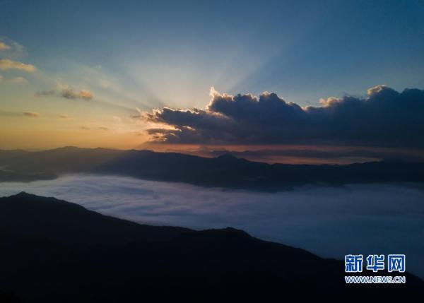 這是11月20日拍攝的福建省三明市將樂縣國家級自然保護區(qū)晨曦(無人機照片)。新華社記者 宋為偉 攝