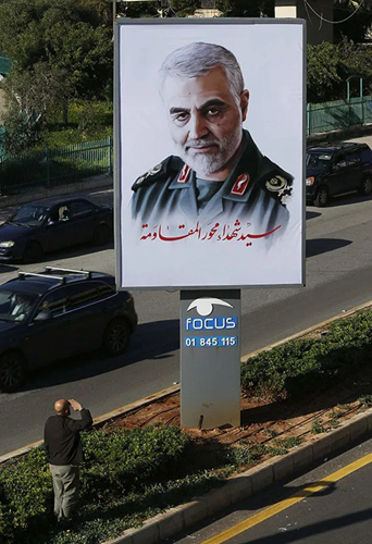 2020年1月6日,在黎巴嫩首都貝魯特,一名男子向在美國空襲中被炸身亡的伊朗伊斯蘭革命衛(wèi)隊(duì)將領(lǐng)蘇萊曼尼的肖像敬禮。新華社發(fā)(比拉爾·賈維希攝)