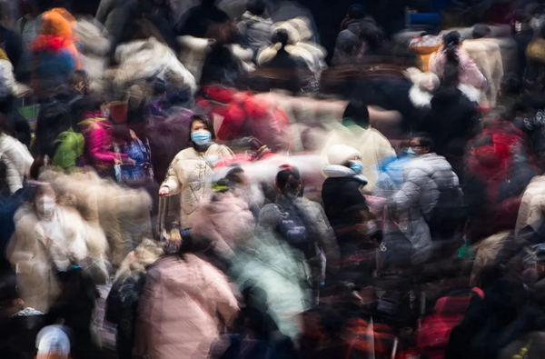 2020年1月22日,在湖北省武漢市漢口火車站,旅客戴口罩進(jìn)站乘車。1月23日,武漢宣布暫時(shí)關(guān)閉離漢通道,在全國鼎力支持下,進(jìn)入“隔一座城、護(hù)一國人”的攻堅(jiān)階段。新華社記者 肖藝九 攝