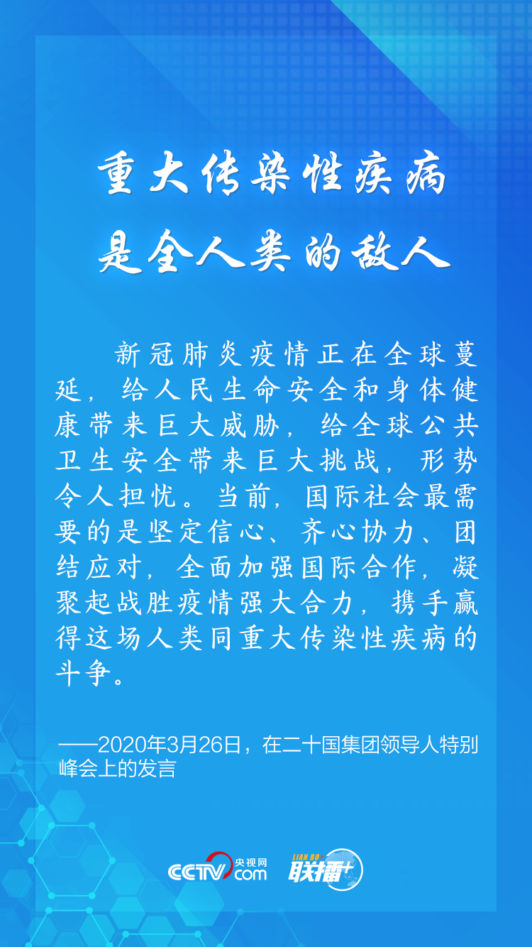 新冠肺炎疫情發(fā)生以來(lái),中國(guó)始終積極參與全球抗疫行動(dòng),闡明中國(guó)理念、提出中國(guó)主張。習(xí)主席更是身體力行,多次出席“云會(huì)議”,站在守護(hù)全人類生命安全的高度,呼吁國(guó)際社會(huì)團(tuán)結(jié)合作,堅(jiān)持多邊主義、推動(dòng)構(gòu)建人類衛(wèi)生健康共同體。