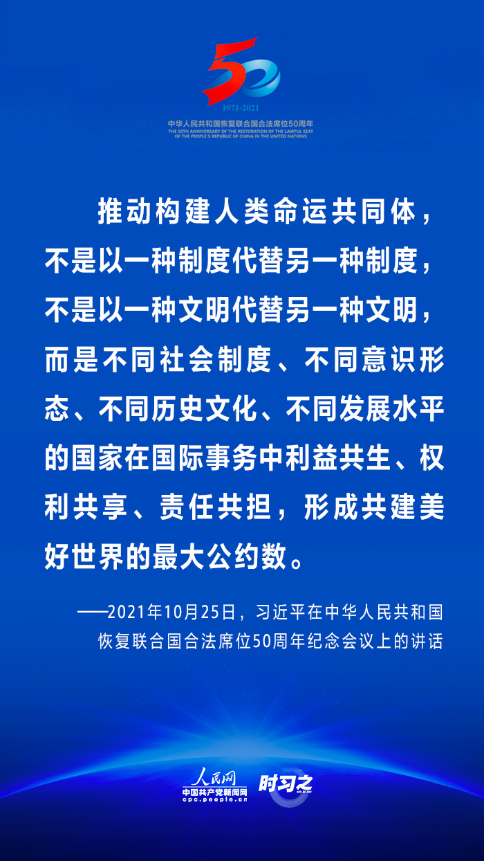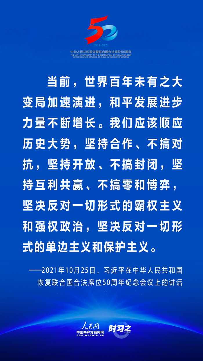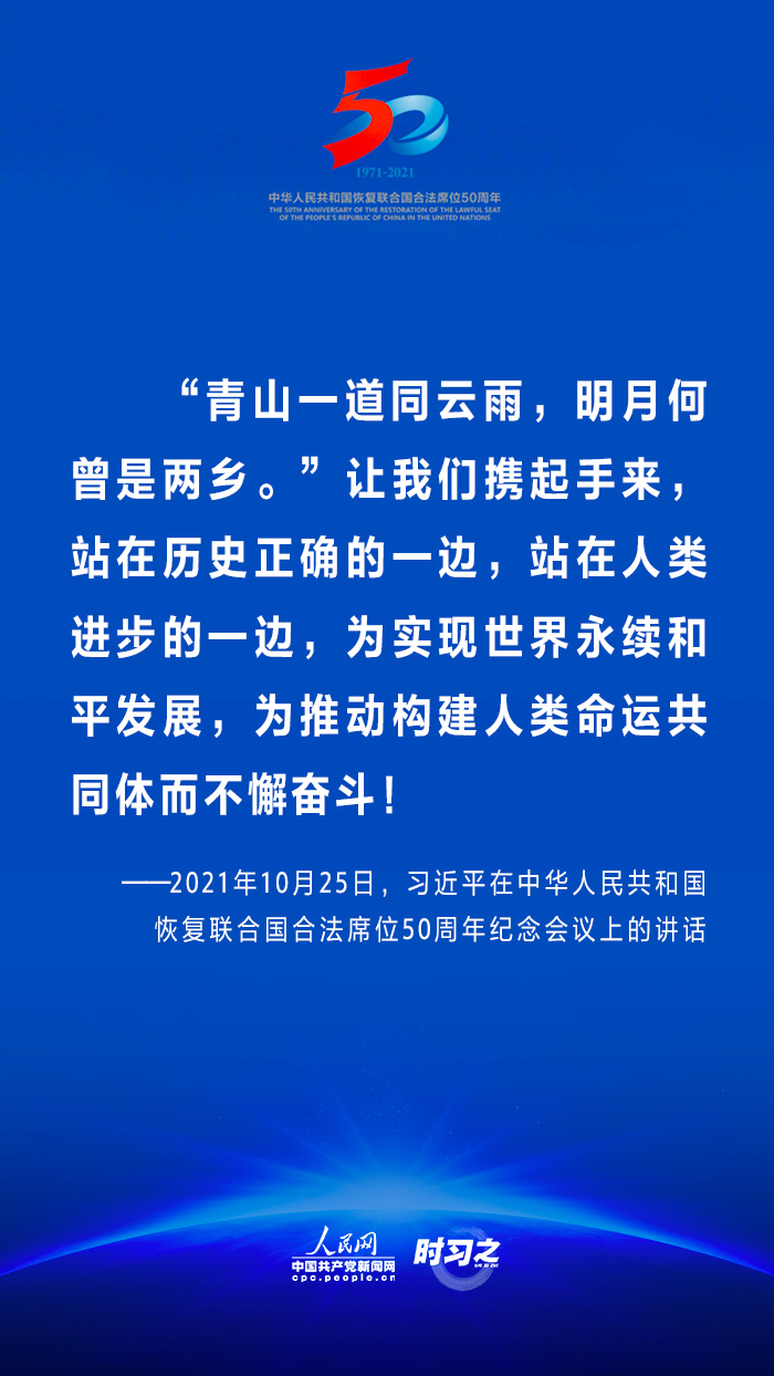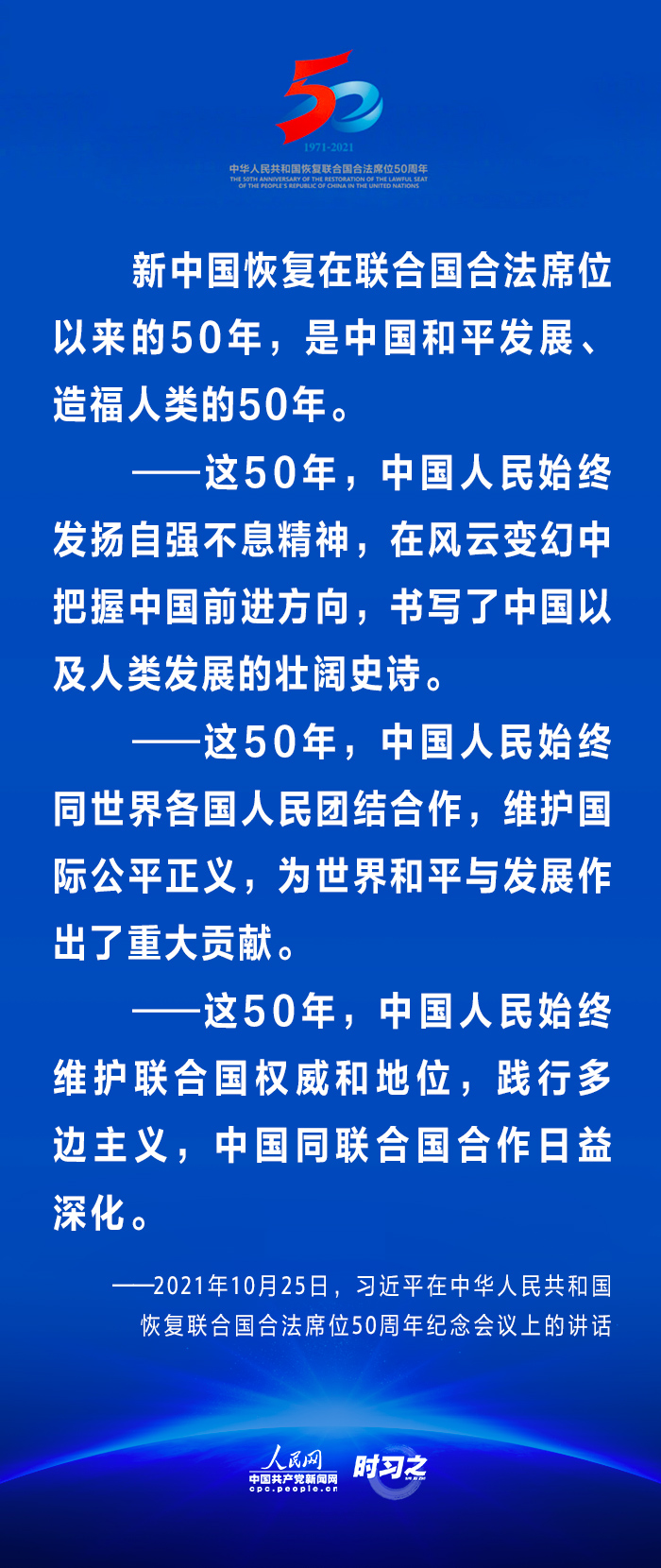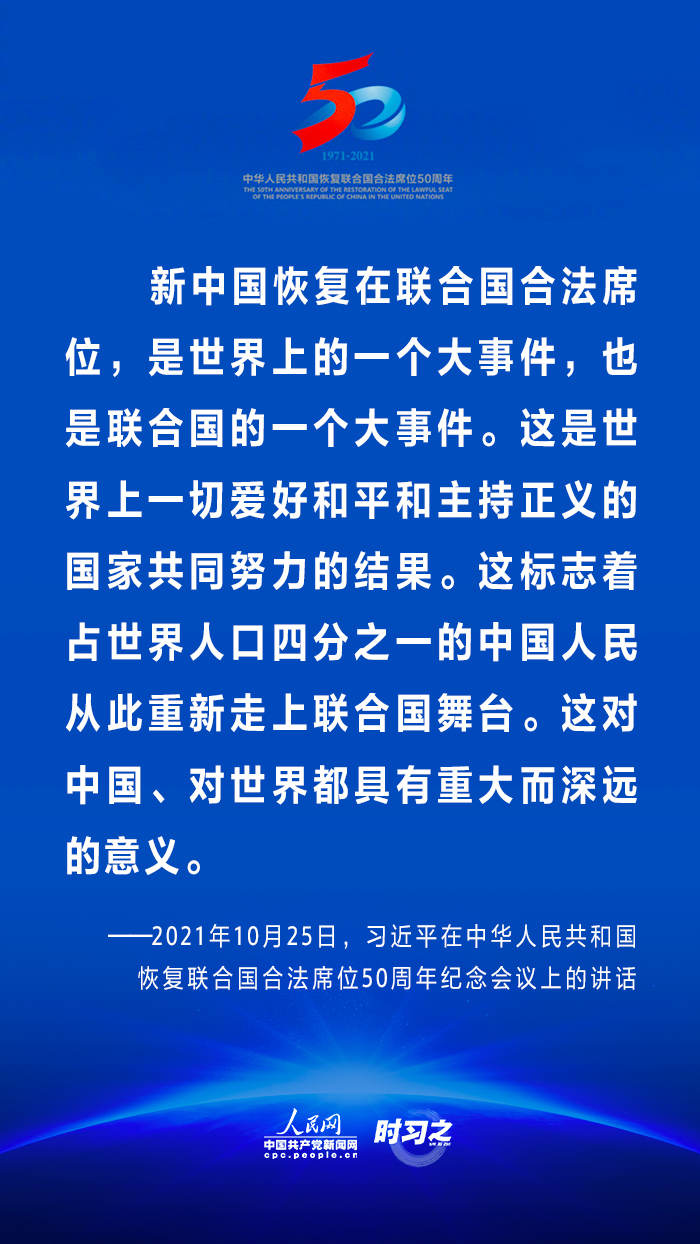 10月25日,國家主席習(xí)近平在北京出席中華人民共和國恢復(fù)聯(lián)合國合法席位50周年紀(jì)念會議并發(fā)表重要講話。在講話中,習(xí)近平回顧了中華人民共和國恢復(fù)在聯(lián)合國合法席位50年以來的重大成就,面對百年未有之大變局,重申中國將始終做世界和平的建設(shè)者、全球發(fā)展的貢獻(xiàn)者和國際秩序的維護(hù)者。 WTT安康新聞網(wǎng)
