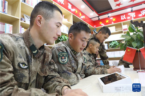中共中央總書記、國家主席、中央軍委主席習(xí)近平24日下午出席軍隊(duì)領(lǐng)導(dǎo)干部會(huì)議時(shí)發(fā)表的重要講話,在解放軍和武警部隊(duì)引起強(qiáng)烈反響。這是新疆軍區(qū)奧爾托蘇邊防連官兵在圖書室認(rèn)真學(xué)習(xí)習(xí)主席重要講話(10月25日攝)。新華社發(fā)(劉南松 攝)
