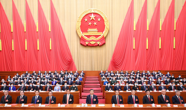 3月13日,第十四屆全國人民代表大會(huì)第一次會(huì)議在北京人民大會(huì)堂舉行閉幕會(huì)。大會(huì)執(zhí)行主席、十四屆全國人大常委會(huì)委員長趙樂際主持閉幕會(huì)并講話。 新華社記者 黃敬文 攝