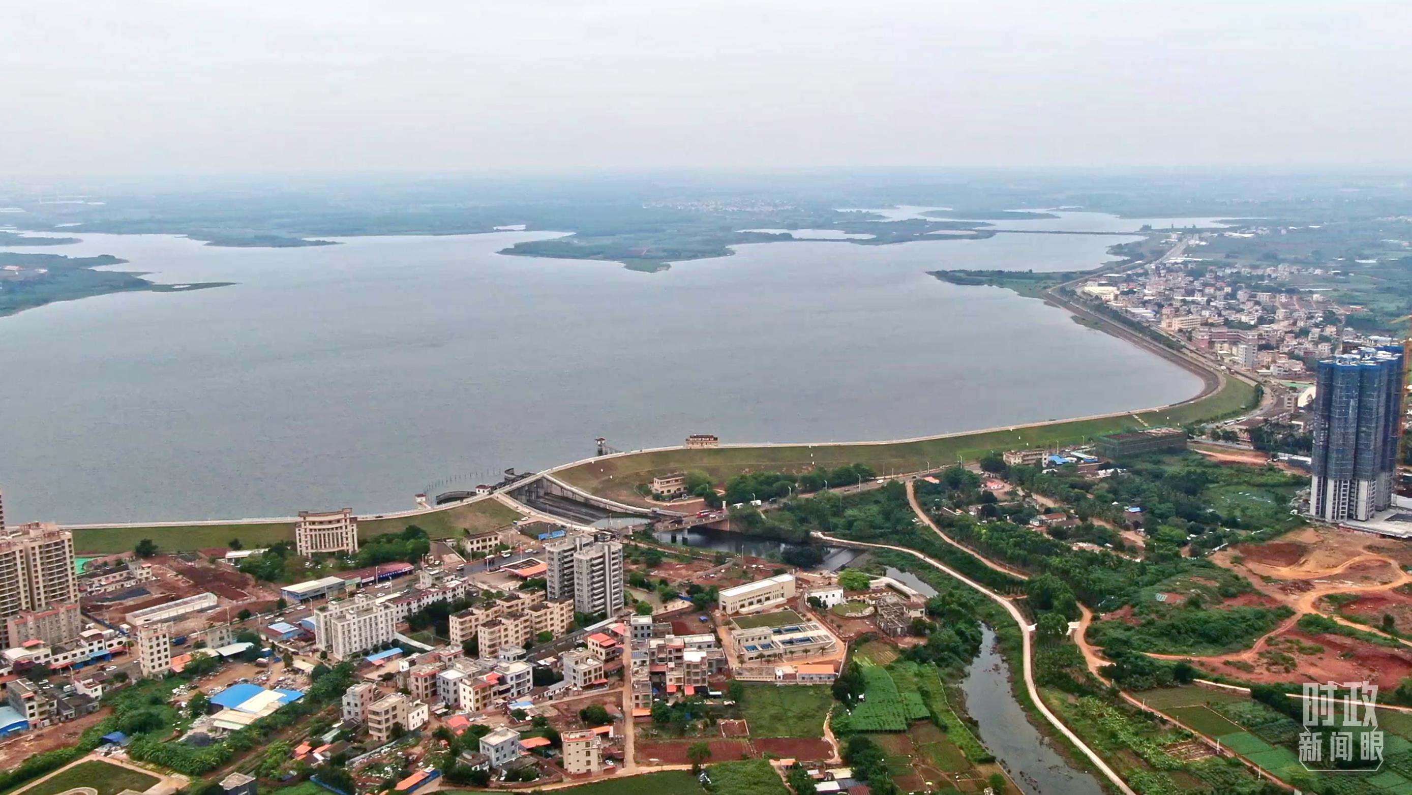 △水庫沿岸的城市。(總臺(tái)央廣記者潘毅拍攝)