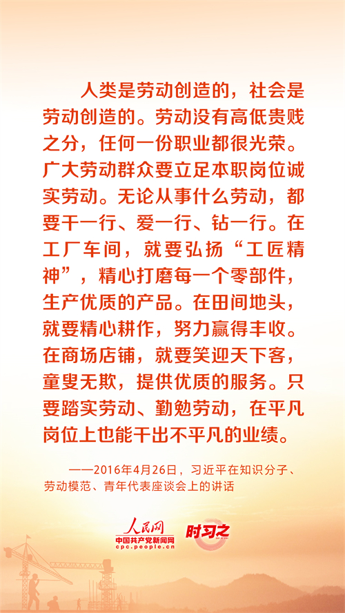 人民創(chuàng)造歷史,勞動(dòng)開創(chuàng)未來。黨的十八大以來,習(xí)近平總書記始終心系全國(guó)廣大勞動(dòng)者,激勵(lì)廣大勞動(dòng)者在平凡崗位上續(xù)寫不平凡的故事。在“五一”國(guó)際勞動(dòng)節(jié)到來之際,讓我們重溫總書記的諄諄話語(yǔ),用辛勤勞動(dòng)為經(jīng)濟(jì)社會(huì)發(fā)展貢獻(xiàn)力量。FeR安康新聞網(wǎng)