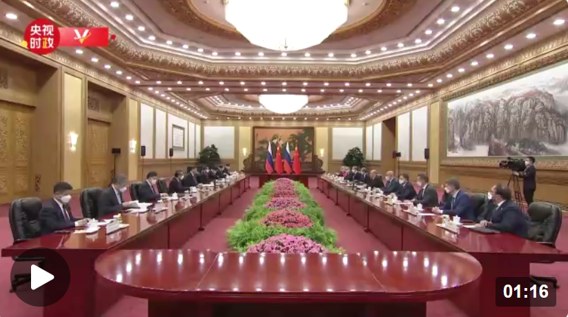 米舒斯京說:“尊敬的習(xí)近平主席,首先請?jiān)试S我向您轉(zhuǎn)達(dá)俄羅斯聯(lián)邦總統(tǒng)普京的親切問候和良好祝愿。今年3月份,他同您在莫斯科舉行的會談至今仍使他倍感親切。我們非常珍視同中國的睦鄰友好合作伙伴關(guān)系。”