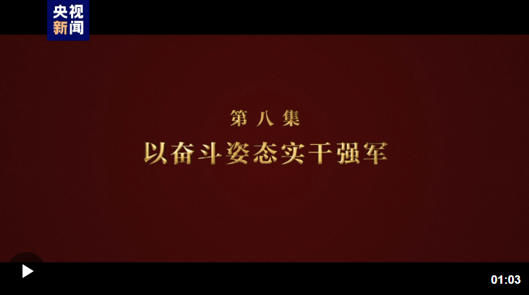 思想解讀類(lèi)融媒體片《逐夢(mèng)》第八集《以?shī)^斗姿態(tài)實(shí)干強(qiáng)軍》于8月4日20:00檔在央視綜合頻道(CCTV-1)首播,央視國(guó)防軍事頻道(CCTV-7)重播。