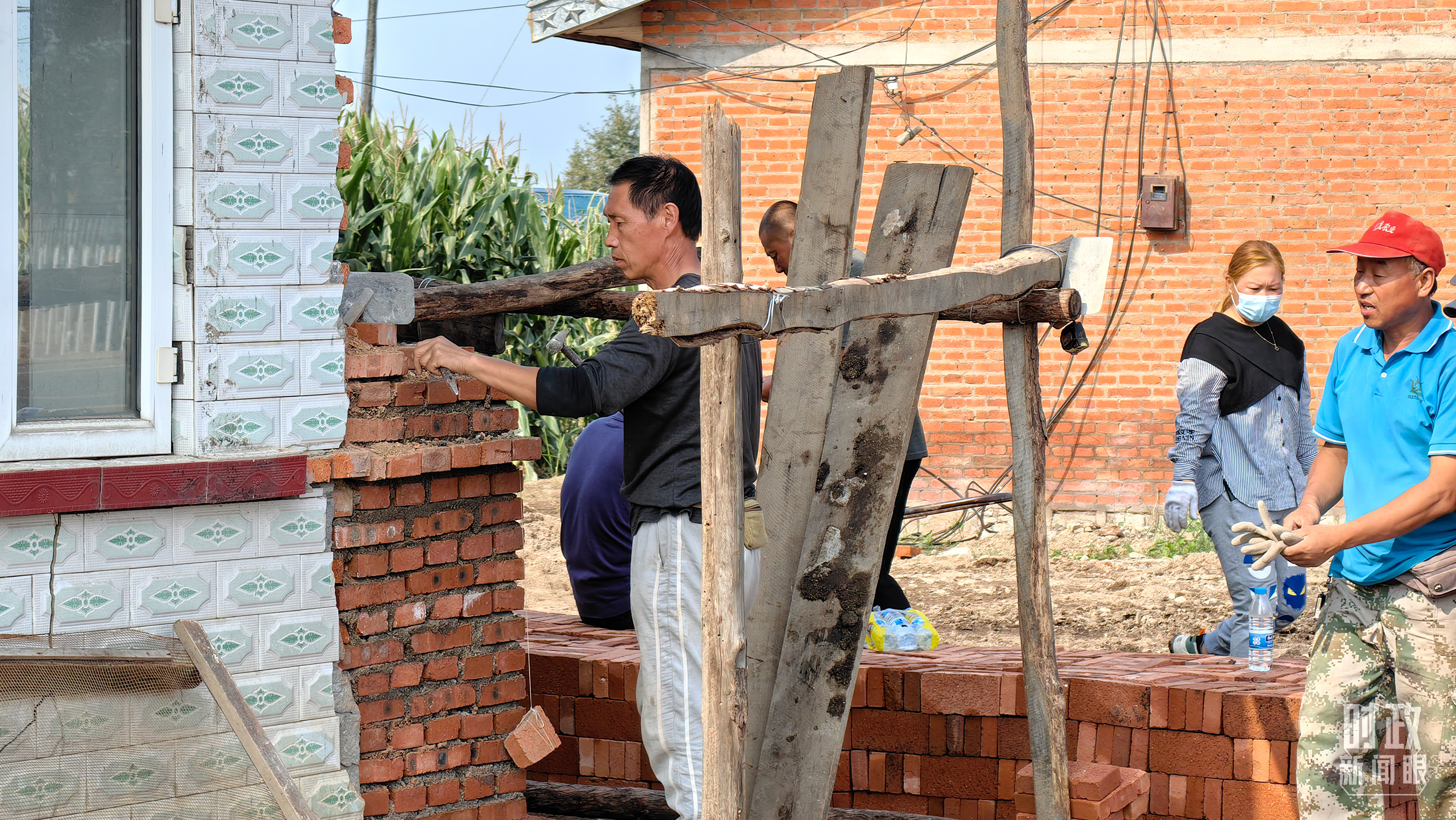 △龍王廟村內,村民正在修繕在洪水中受損的房屋。(總臺央廣記者潘毅拍攝)