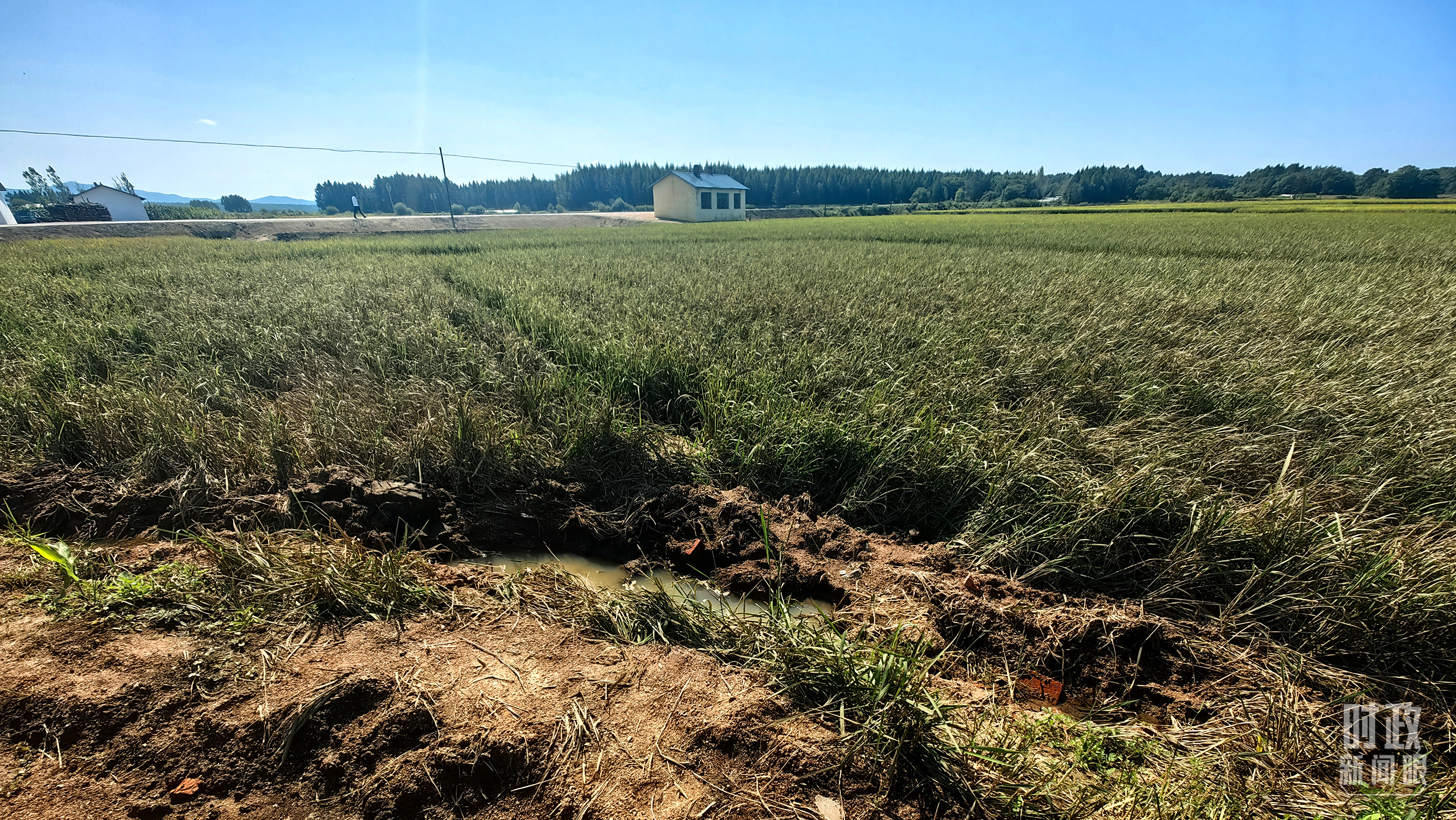 △圖為龍王廟村在洪災中受損的農田。(總臺央視記者史偉拍攝)