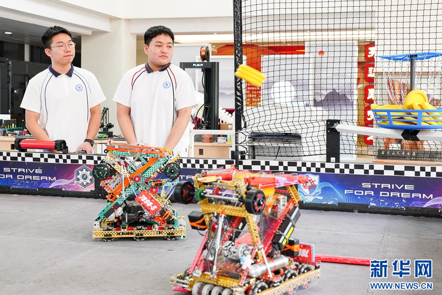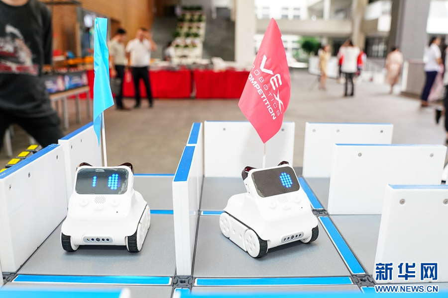 9月12日,福州第三中學(xué),學(xué)生進(jìn)行VEX機(jī)器人競賽。新華網(wǎng) 肖和勇 攝