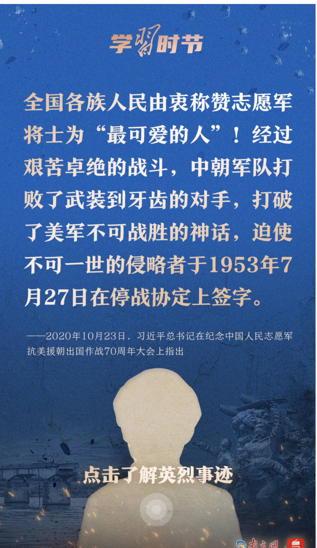 今天,讓我們一起學習習近平總書記的重要論述,永續(xù)傳承偉大抗美援朝精神。勿忘歷史,不負英魂!銘記過往,繼續(xù)前行!