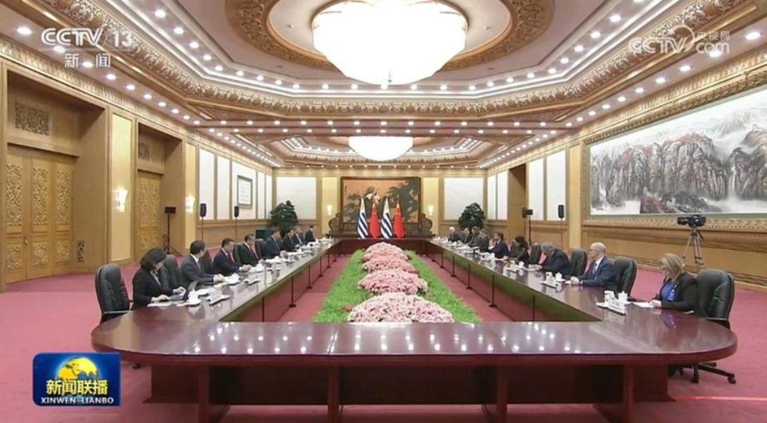 11月22日下午,國家主席習(xí)近平在人民大會堂同來華進(jìn)行國事訪問的烏拉圭總統(tǒng)拉卡列舉行會談。兩國元首宣布,將中烏關(guān)系提升為全面戰(zhàn)略伙伴關(guān)系。