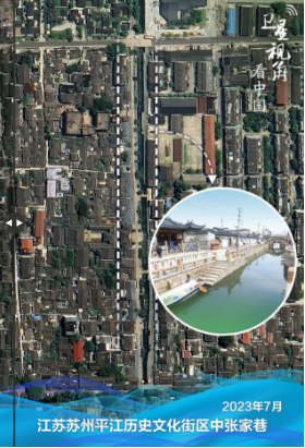 左右滑動看變化。平江歷史文化街區(qū)中張家巷,曾經(jīng)因被填埋“消失”了半個世紀之久的河道通水“重生”。(實景舊圖為歷史資料畫面,由蘇州市地方志辦公室提供)