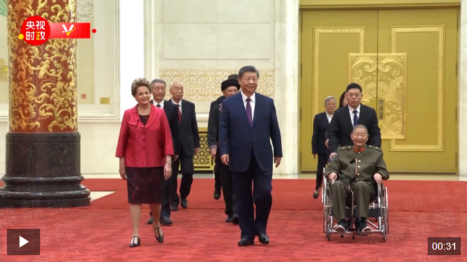 △獨(dú)家視頻丨習(xí)近平同國家勛章和國家榮譽(yù)稱號獲得者步入頒授儀式現(xiàn)場
