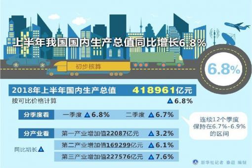 新華社北京7月16日電(記者陳煒偉、安蓓)國家統(tǒng)計(jì)局16日發(fā)布數(shù)據(jù),初步核算,上半年國內(nèi)生產(chǎn)總值418961億元,按可比價(jià)格計(jì)算,同比增長6.8%。分季度看,一季度……