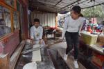 原標題:圖片新聞 1月3日,郭煒蘭(右)騎在一根1米多長、碗口粗的搟面杖上,上下跳動,用身體的力量將另一端的面團壓成扁條形,這就是“……