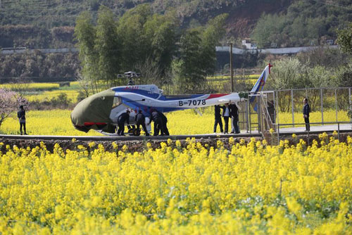 3月22日上午,一架AC311直升機(jī)載著一批又一批乘客從婺源江灣起飛,然后盤旋在婺源著名景點(diǎn)篁嶺上空,讓游客體驗(yàn)了全新的“坐直升機(jī)看油菜花”旅游項(xiàng)目。航線飛行……