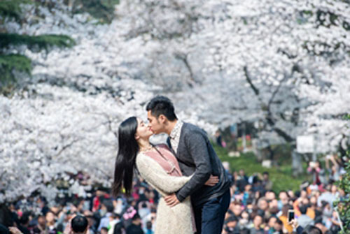 3月21日,武大櫻花盛開游客如織。當(dāng)日,武大櫻花盛開的首個(gè)雙休日。長約200米的櫻花大道上1000多株櫻花競相綻放,吸引著數(shù)萬游客,使寧靜的校園變成了熱鬧的公園……