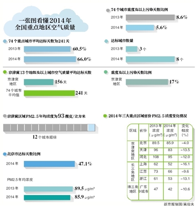 新京報(bào)訊 (記者金煜) 環(huán)保部昨日公布了去年重點(diǎn)區(qū)域和74個(gè)城市空氣質(zhì)量狀況。去年全國PM2.5濃度有了普遍下降,京津冀區(qū)域PM2.5年均濃度降到93微克/立方米,雖然……
