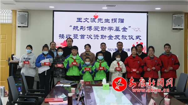11名學(xué)生現(xiàn)場(chǎng)領(lǐng)取了首期“航彤博愛(ài)助學(xué)基金”捐贈(zèng)款,2名學(xué)生、家長(zhǎng)代表分別作受贈(zèng)感言。