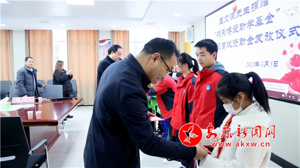 捐贈(zèng)結(jié)束后,縣委常委、統(tǒng)戰(zhàn)部部長(zhǎng)李俊代表縣委、縣政府對(duì)王文波先生這種主動(dòng)擔(dān)當(dāng)作為的善行義舉表示感謝。希望學(xué)生要加倍珍惜這份關(guān)愛(ài),不能因貧而自卑、自暴自棄,而是要把成長(zhǎng)路上的磨難當(dāng)做磨煉意志的階梯,自信自強(qiáng),成長(zhǎng)成才。希望家長(zhǎng)要盡職盡責(zé),幫助孩子成才;希望全體教育人也要常懷感恩之心,常存感激之情,珍惜今天良好的辦學(xué)條件,把社會(huì)各界的支持和鼓勵(lì)化作無(wú)窮的動(dòng)力,不斷提升教育教學(xué)質(zhì)量,潛心鉆研教學(xué),以實(shí)實(shí)在在的業(yè)績(jī)回報(bào)組織、社會(huì)和企業(yè)家的關(guān)心和厚愛(ài)。最后,李俊要求:紅十字會(huì)、教體科技局以及家長(zhǎng)要按照捐贈(zèng)人意愿,公開(kāi)、透明、規(guī)范管理捐贈(zèng)善款,及時(shí)、準(zhǔn)確將善款用于愛(ài)心助學(xué),讓捐贈(zèng)人放心,讓品學(xué)兼優(yōu)的貧困孩子受益。
