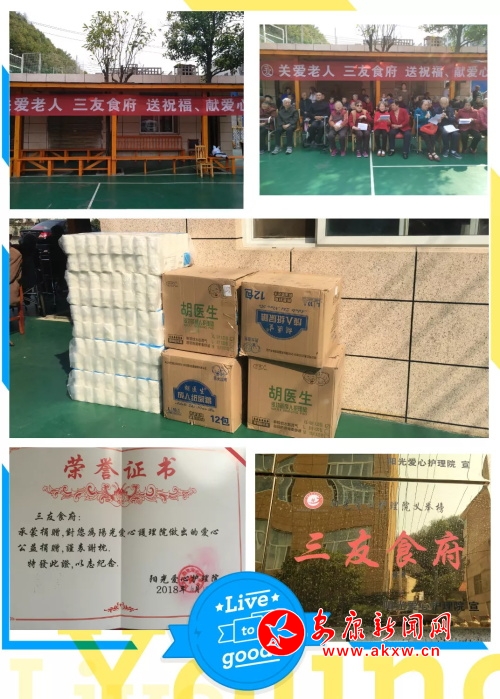 安康新聞網(wǎng)訊(記者 周。 愛不是靠說,而是靠做。說得再多不如踏實去做,愛老關(guān)鍵靠行動。昨天是農(nóng)歷9月9日重陽節(jié),為關(guān)愛老人,三友食業(yè)免費為護理院老人送溫暖,送早餐、紙巾,尿不濕等老人用品。并在這段時間里為70歲以上老人提供免費早餐。hWA安康新聞網(wǎng)