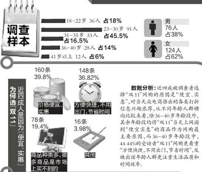 與此同時(shí),在明確表示不參與“雙11”搶購(gòu)的人群中,33.33%的人擔(dān)心商品質(zhì)量,22.22%的人表示“不想湊熱鬧。”