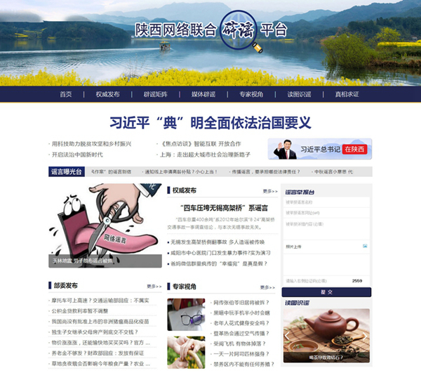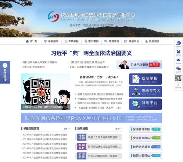 陜西省網(wǎng)絡(luò)舉報(bào)中心官網(wǎng)“陜西互聯(lián)網(wǎng)違法和不良信息舉報(bào)中心”網(wǎng)站上線于2017年2月5日,主要功能是開(kāi)展網(wǎng)絡(luò)舉報(bào)工作宣傳,受理網(wǎng)民對(duì)網(wǎng)絡(luò)違法和不良信息舉報(bào),開(kāi)展針對(duì)網(wǎng)絡(luò)謠言的識(shí)謠辟謠工作,以及配合相關(guān)部門做好網(wǎng)絡(luò)輿情的正面引導(dǎo)。“陜西網(wǎng)絡(luò)聯(lián)合辟謠平臺(tái)”是陜西網(wǎng)絡(luò)辟謠聯(lián)盟的官方網(wǎng)站,上線于2017年7月28日,主要用于宣傳、受理和發(fā)布重要辟謠信息及公布相關(guān)工作數(shù)據(jù)。