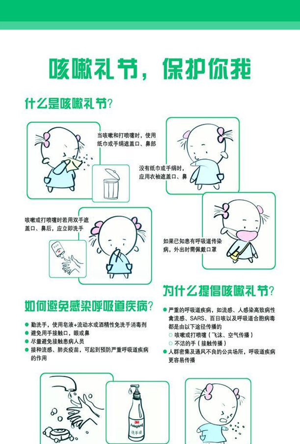 (2)保持良好的個(gè)人衛(wèi)生習(xí)慣,咳嗽或打噴嚏時(shí)用紙巾掩住口鼻,經(jīng)常徹底洗手,不用臟手觸摸眼睛、鼻或口;
