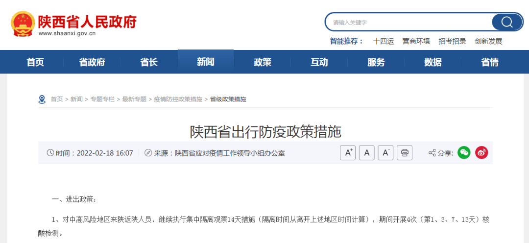 陜西省應(yīng)對(duì)疫情工作領(lǐng)導(dǎo)小組辦公室日前發(fā)布陜西省最新出行防疫政策措施。