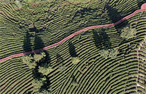 這是6月14日拍攝的陜西省平利縣老縣鎮(zhèn)蔣家坪茶園(無人機(jī)照片)。新華社記者 李一博 攝
