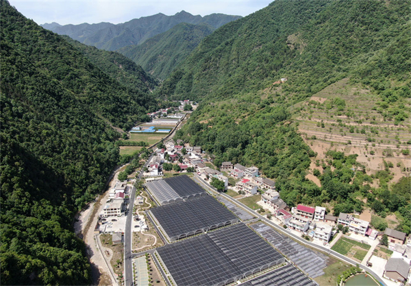 5月30日拍攝的陜西省商洛市柞水縣金米村的木耳大棚(無人機(jī)照片)。新華社記者 李一博 攝