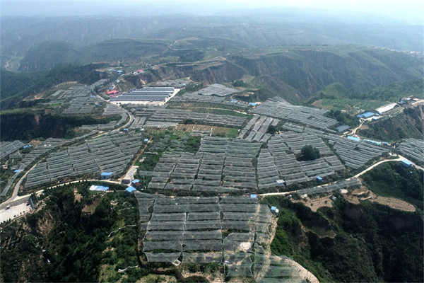 2020年7月29日拍攝的陜西省延安市延川縣梁家河村山地蘋果園(無人機(jī)照片)。新華社記者 張博文 攝
