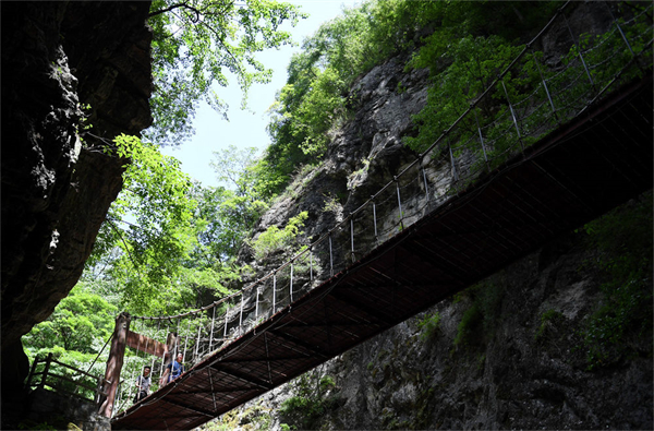 5月30日,游客在位于陜西省柞水縣的牛背梁國家森林公園內(nèi)游玩。新華社記者 李一博 攝