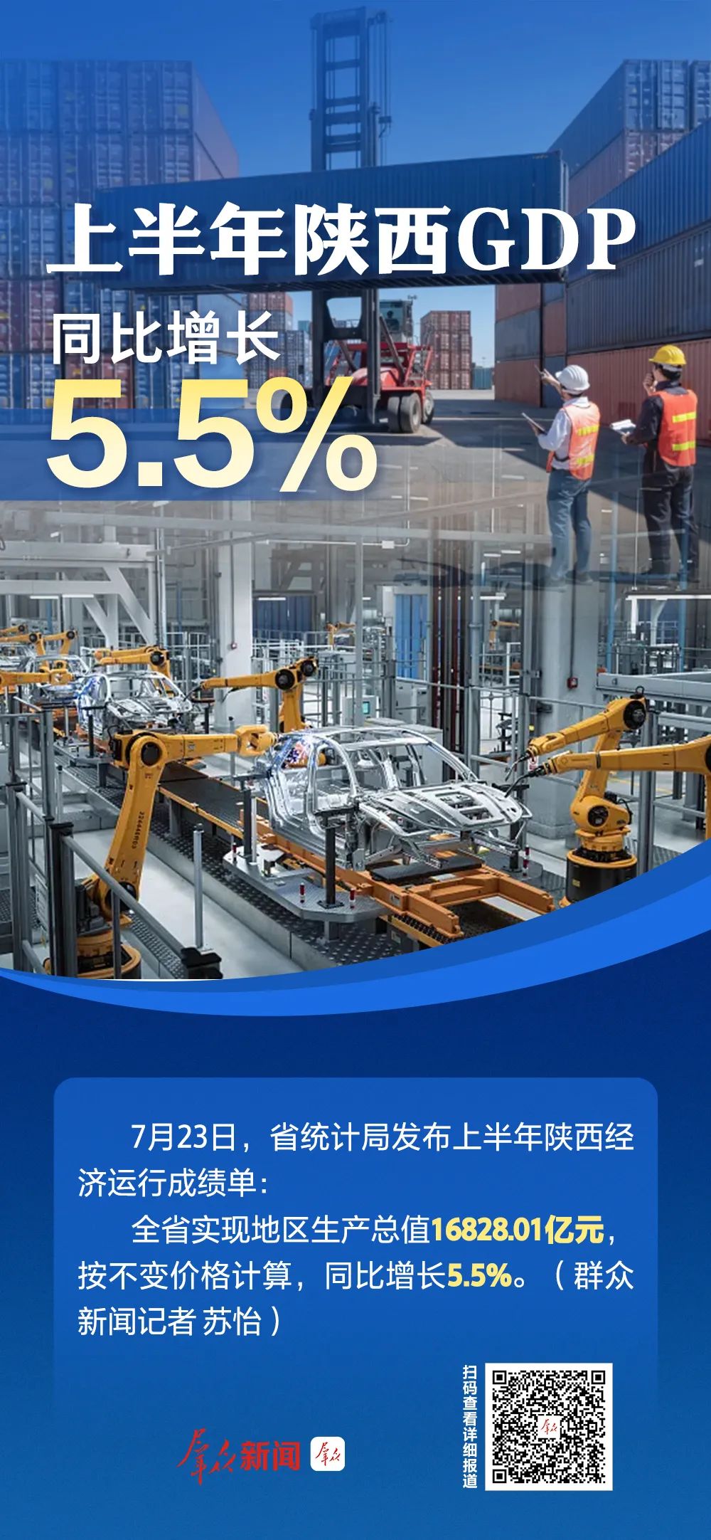 7月23日,省統(tǒng)計局發(fā)布上半年陜西經(jīng)濟運行成績單:全省實現(xiàn)地區(qū)生產(chǎn)總值16828.01億元,按不變價格計算,同比增長5.5%。eWK安康新聞網(wǎng)