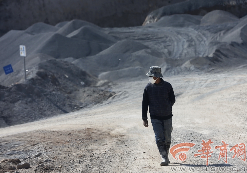 石料開采加工時粉塵嚴重,工人作業(yè)時都需戴防護用具。 記者 鄧小衛(wèi) 文/圖