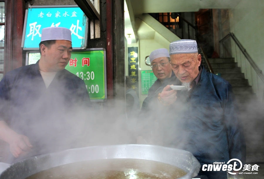 老白家水盆的第三代傳人白玉亭試湯,兌湯的比例和湯的味道決定了一碗水盆羊肉的成敗。D8w安康新聞網(wǎng)