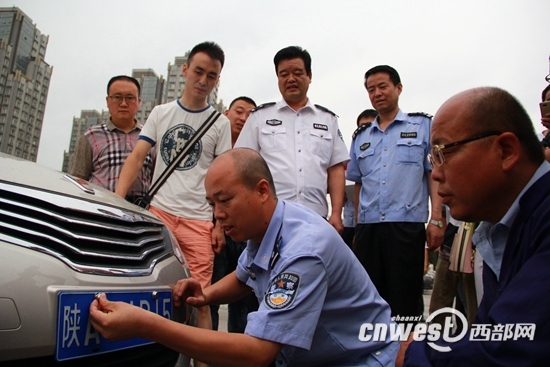圖注:西安市車管所民警為第200萬輛機(jī)動(dòng)車掛牌西部網(wǎng)訊(記者 孫鵬) 截止7月3日,西安市全市機(jī)動(dòng)車保用量突破200萬輛大關(guān)。上午10時(shí)左右,交管部門在車管所舉行“第……