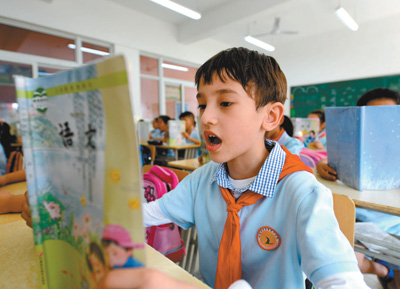 圖為9月13日,在安徽省合肥市蚌埠路第二小學(xué),德國籍小學(xué)生正在用普通話朗讀課文。VuX安康新聞網(wǎng)