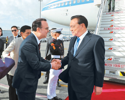 本報(bào)馬尼拉11月12日電 (記者白陽(yáng)、張志文)當(dāng)?shù)貢r(shí)間11月12日下午,應(yīng)東盟輪值主席國(guó)菲律賓總統(tǒng)杜特爾特邀請(qǐng),國(guó)務(wù)院總理李克強(qiáng)乘專(zhuān)機(jī)抵達(dá)馬尼拉,出席12日至14日在這里舉行的第二十次中國(guó)—東盟(10+1)領(lǐng)導(dǎo)人會(huì)議、第二十次東盟與中日韓(10+3)領(lǐng)導(dǎo)人會(huì)議和第十二屆東亞峰會(huì),并在與會(huì)后對(duì)菲律賓進(jìn)行正式訪(fǎng)問(wèn)。